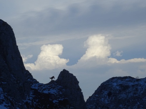 Dopo una bella pausa, ci mettiamo i ramponi e puntiamo dritti verso Cima Martellese... E ricomincia la festa! Come dei cinghiali che scavano nella neve in cerca di tuberi e patate, anche noi avanziamo a fatica nella coltre bianca.