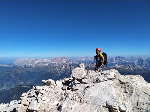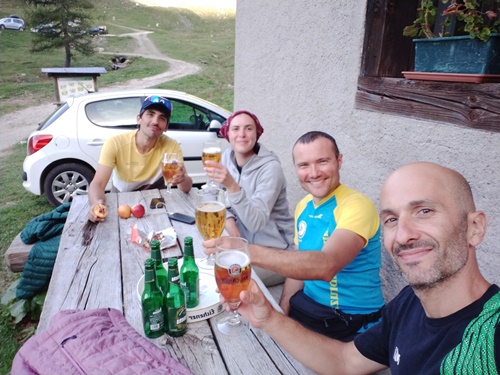 Facciamo tappa al rifugio Torrani per una birretta e scendiamo lungo la via ferrata Tissi.